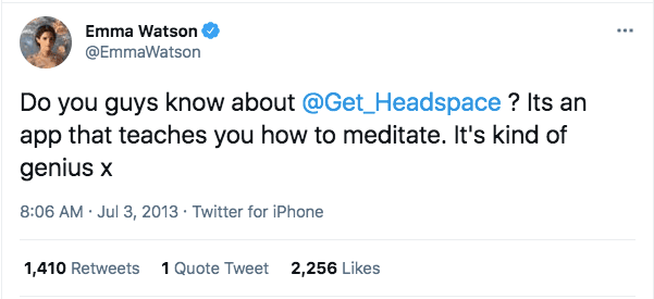 I first heard the phrase "it's kind of genius" in copy for the meditation app Headspace. Emma Watson tweeted the phrase and Headspace promoted it as a testimonial: