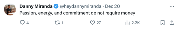 Danny Miranda reminded me that three essential elements for success are completely free.