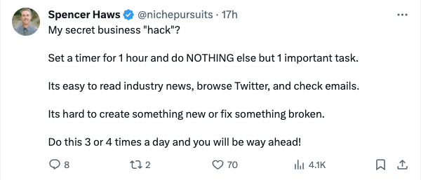 You'll be surprised how much your business can grow if you spend even just one hour per day on the most important growth driver. So try this hack: